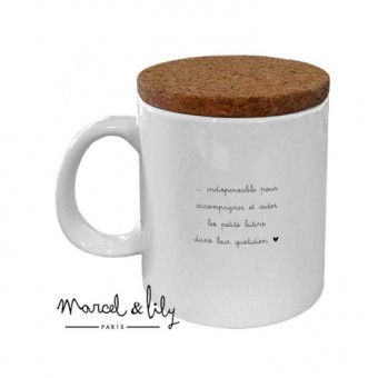 The cork lid on this mug is made exclusively for Marcel & Lily in south-west France