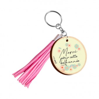 Wooden key ring Thank you for a wonderful year, with pink pompom