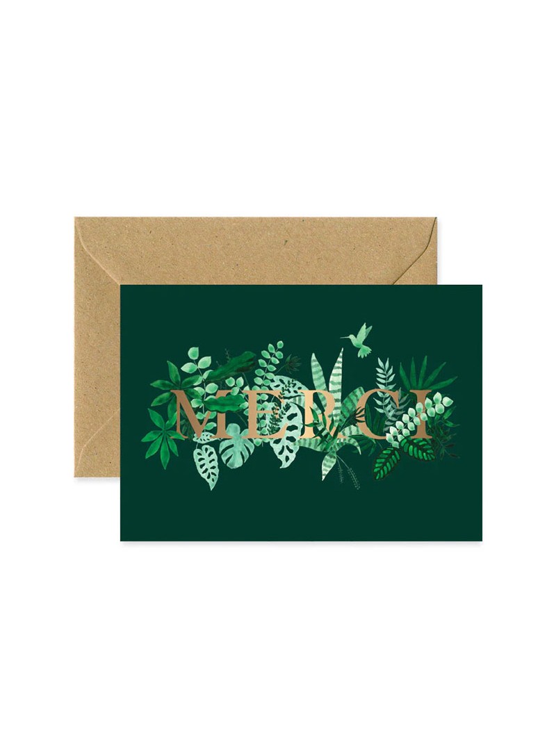 Green thank-you card with gold lettering