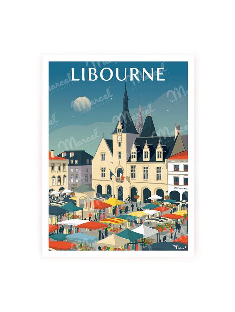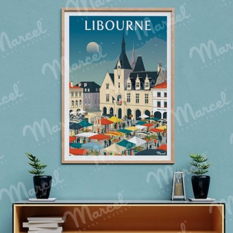 Affiche 50 x 70 de la ville de Libourne en Gironde