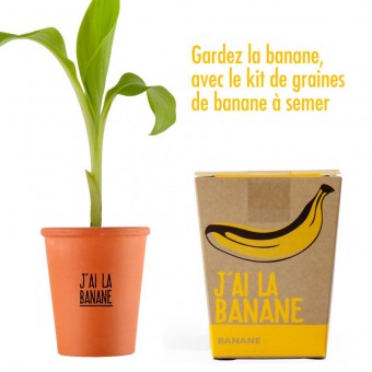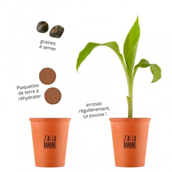 Petit pot en terre estampillé "J'ai la banane" contenant :