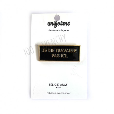Petit pin's rectangulaire en émail noir à l'humour bien trash et décalé, à offrir à ses potes vendeurs ou vendeuses, ou à tous ceux qui détestent qu'on leur demande des renseignements dans les magasins alors qu'ils ne travaillent pas ici !!