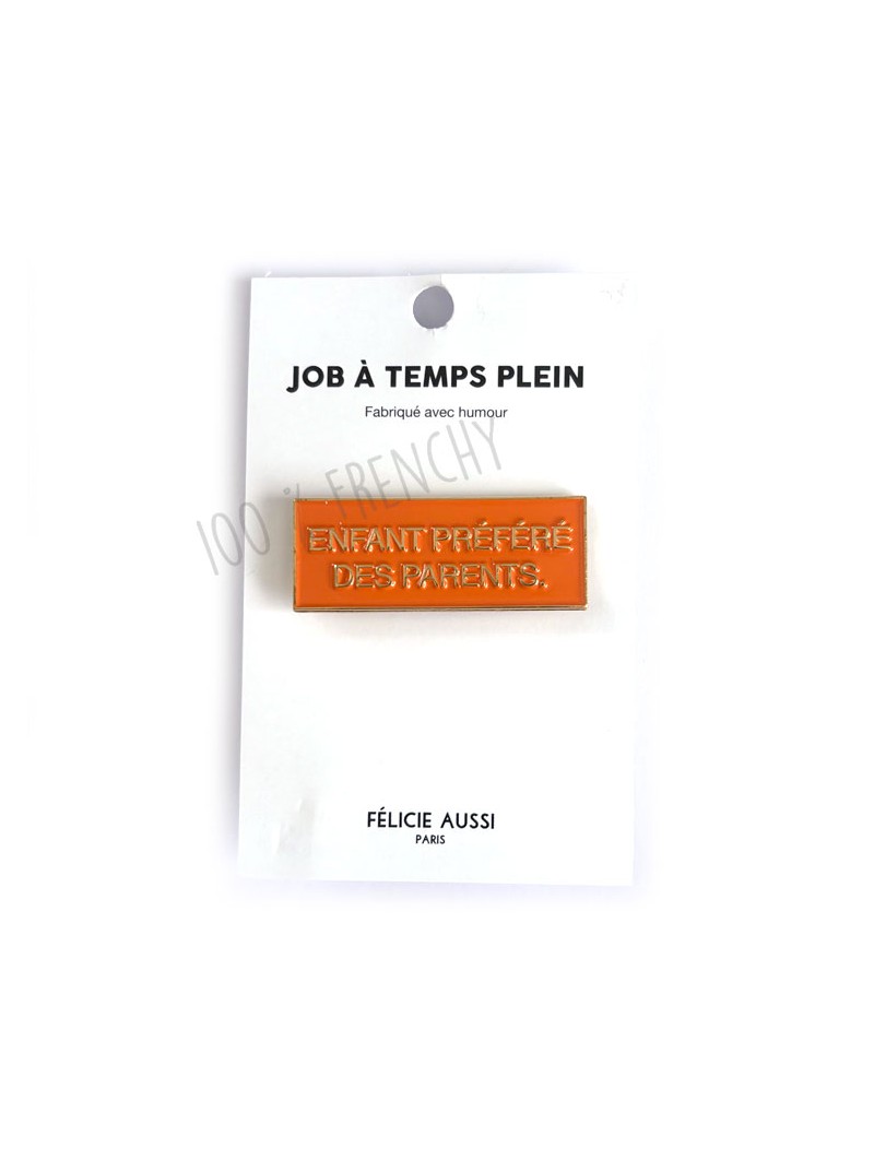 Petit pin's rectangulaire en émail orange humoristique, à offrir à des frères et sœurs qui se chipotent la préférence des parents !